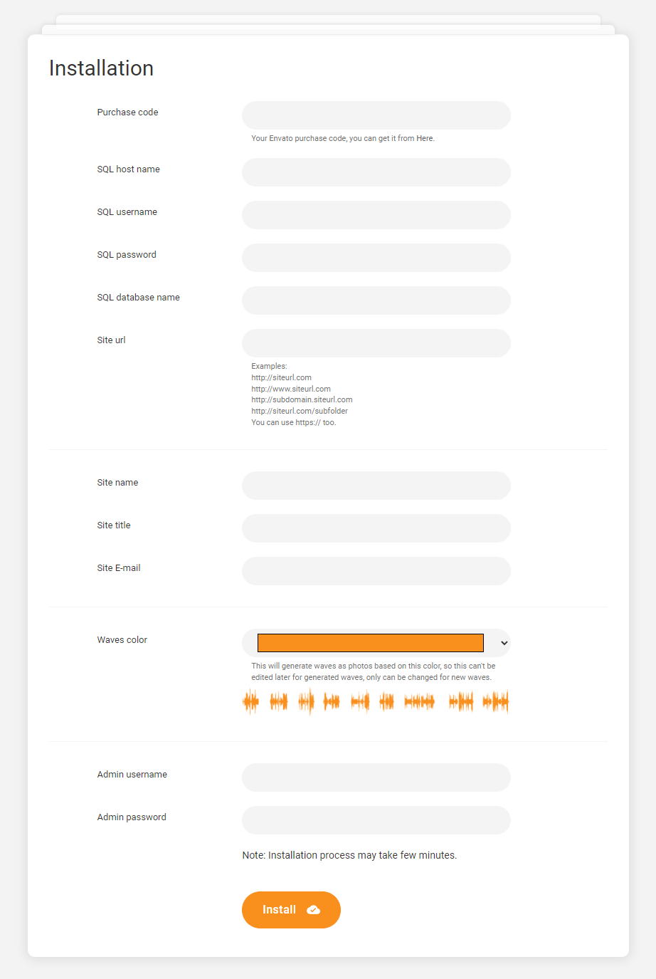 - Once you have wrote the information, please click the install button and wait for a while, the installation process may take up to 5 minutes.